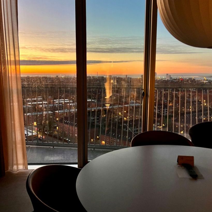 Spektakulær udsigt og en lækker morgenmad i restauranten på 17. etage.